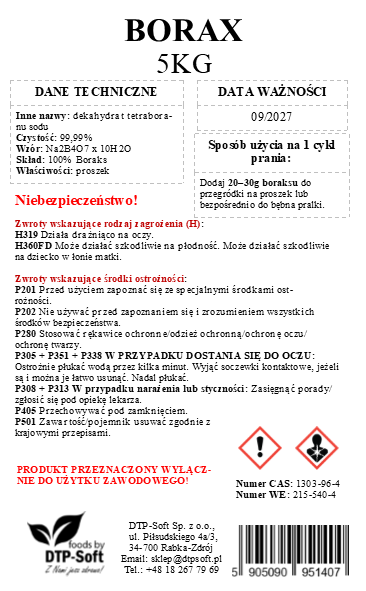 Boraks jest produktem chemicznym przeznaczonym do zastosowań domowych i technicznych.