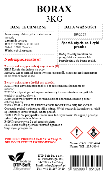 Boraks jest produktem chemicznym przeznaczonym do zastosowań domowych i technicznych.
